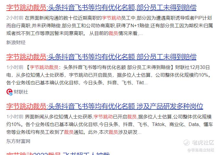 12月30日消息,字節跳動已開啓裁員,據多位人士估算,公司整體優化規模約10%。各個業務線也已基本確認優化目標,今日頭條、抖音、飛書、Tiktok、商業化、Data、懂車帝等業務線均有員工收到了裁員通知。此外,本次裁員涉及研發、產品、運營等多個崗位。多位字節跳動員工表示,自己在績效評定中遭遇了不公正待遇,同樣的工作內容之前拿了正常績效,10月份卻拿了低績效。在溝通的數十位近期離職的字節跳動員工中,部分因爲遭遇離職誘導或者PIP計劃而自行離職,並未獲得賠償,部分員工和公司協商離職,獲得了N+1賠償,還有部分員工因爲期權未歸屬或者找不到工作等原因暫未同意離職。從目前的裁員情況來看,飛書是裁員的重災區。從10月績效評定結束到12月初,飛書人員規模減少了1000多人,降幅已超過10%,而且裁員還在繼續。