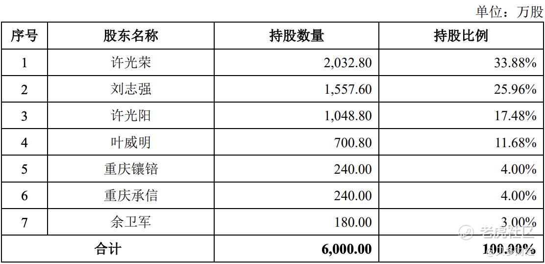 截至招股書籤署日,許光榮直接持有金標股份33.88%的股份,通過重慶承信和重慶鑲錇間接持有該公司2.19%的股份,合計持有該公司36.07%股份;通過重慶承信和重慶鑲錇控制公司8%的表決權,合計控制該公司41.88%表決權。