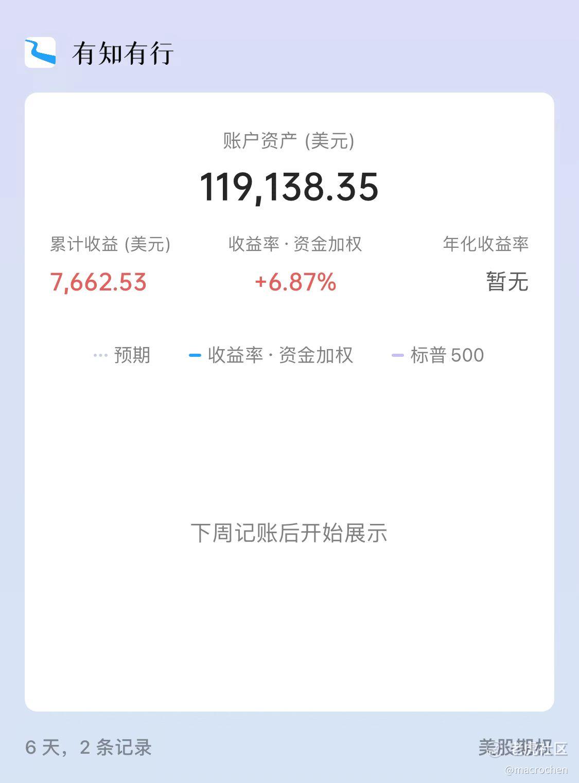 因爲持倉既有美股也有港股,還有期權,不好算操作期權的收益,於是利用有知有行的記賬功能單獨爲期權開了一個賬戶,來記錄一年的收益情況,這裏只是絕對收益,即賺了多少錢,不考慮收益率,因爲大頭還是股票的原因,波動太大,無法體現期權的收益情況