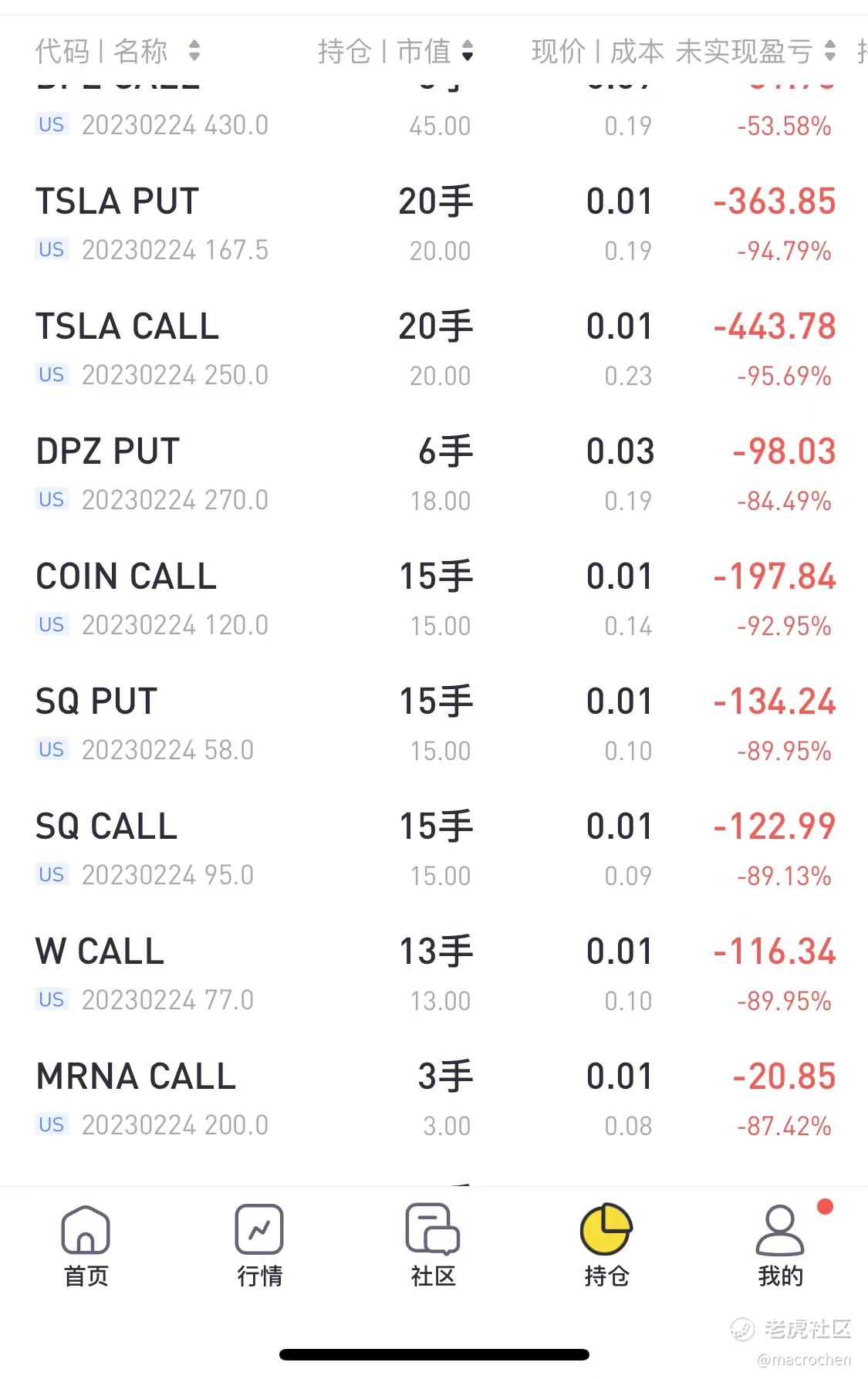 繼續做時間的朋友,時間換空間,讓前面"暴雷"(axp,meta,abnb)的浮虧變實盈,axp已經全部收回收益,meta還剩最後一點,不出問題,下週全部收回,abnb這周繼續單邊下跌,讓short strangle的put端依然出現不小虧損(貌似比上週的虧損還增加了),只好roll over到下週.