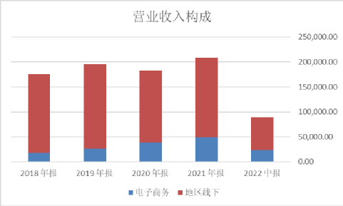 2020 年上半年受疫情防控期間停工停業影響,大部分居民減少戶外聚集活動,多數商場、購物中心停止運營,線下客流量因此受到較大沖擊。公司通過完善電商平臺的基礎建設,與天貓、唯品會等電商平臺合作,增加線上渠道銷售比例。電商渠道收入逐漸增長,2022年上半年電商渠道實現營收2.32億元,已超過公司營業收入的四分之一。