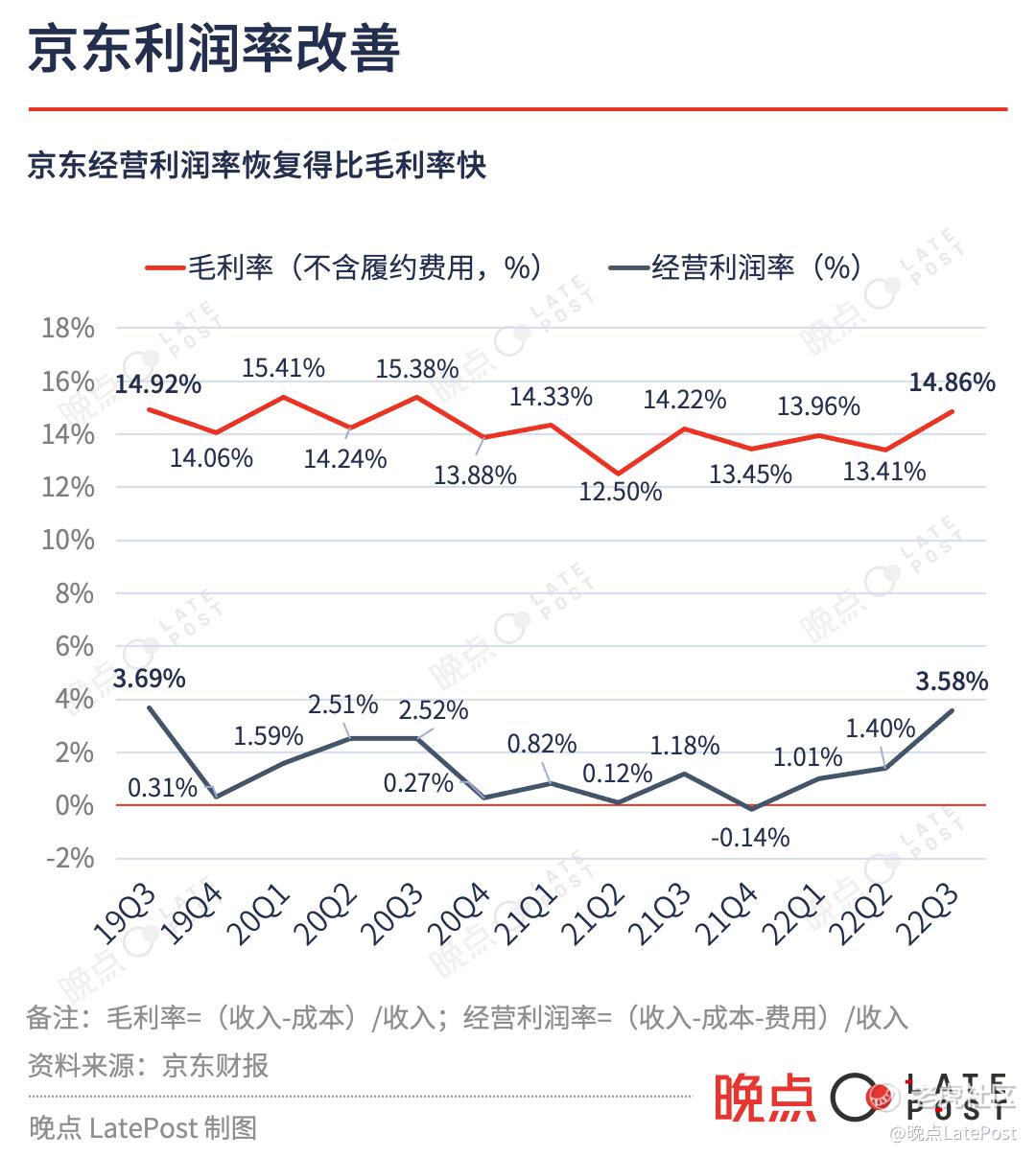 直接觸動劉強東的可能是 2022 年三季度的業績 —— 該季度京東零售部分的營收增速遠低於前兩年同期,只有 7% 的個位數增長,而前一年同期這一數字是 23%,2020 年是 25.2%。