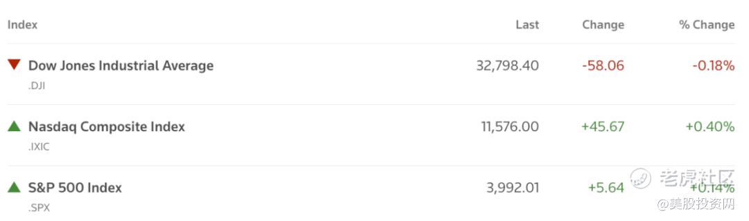 截至收盤,標普500指數收盤上漲0.1%,而道指下跌0.2%。科技股爲主的納指上漲0.4%。