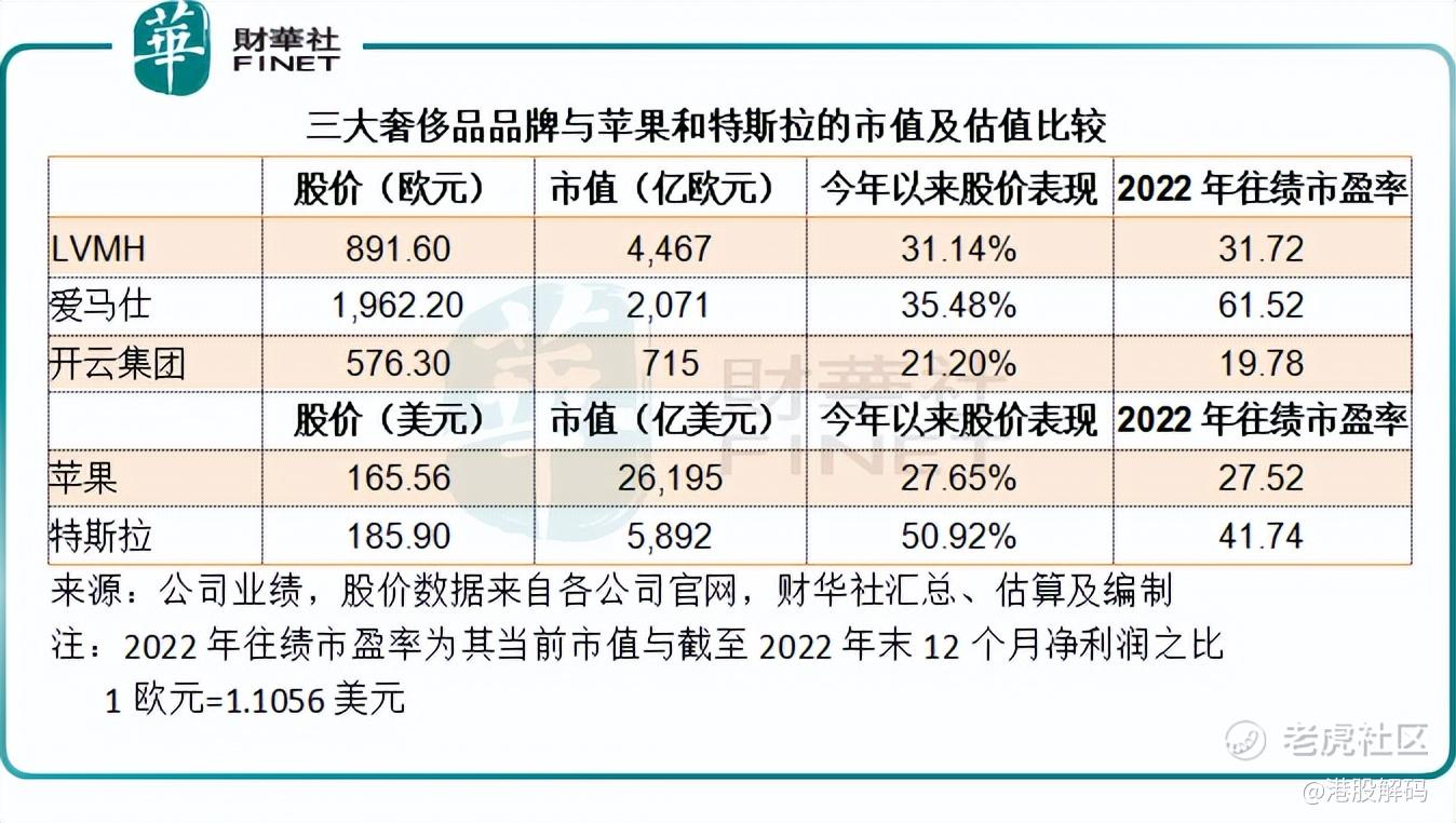 今年以來,LVMH的股價累計上漲31.14%,愛馬仕累計上漲35.48%,開雲集團累計上漲21.20%。但是要說到追上特斯拉甚至蘋果(AAPL.US)恐怕言之尚早。