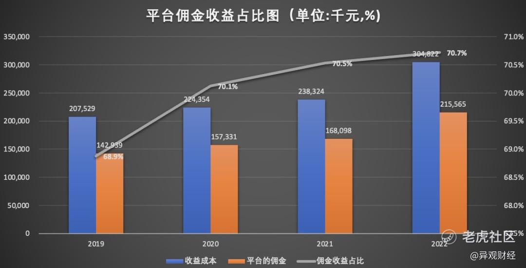 在公司的收入成本中,版權費佔據了較大的份額,2022年全年,公司因版權費支出的金額達到5,890萬元。最近三年,望塵科技收益成本中,平臺抽取的佣金就高達七成以上。