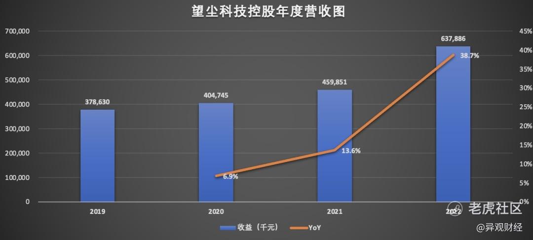 營收方面,2022年全年,望塵科技實現了6.38億元的收入,同比增長38.7%,這一增速高於過去兩年的同比增速。