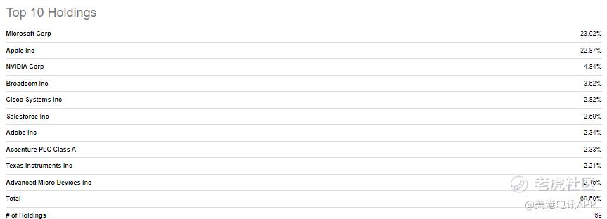 其他科技股表現得可能沒那麼明顯。科技行業ETF的十大持股如下:
