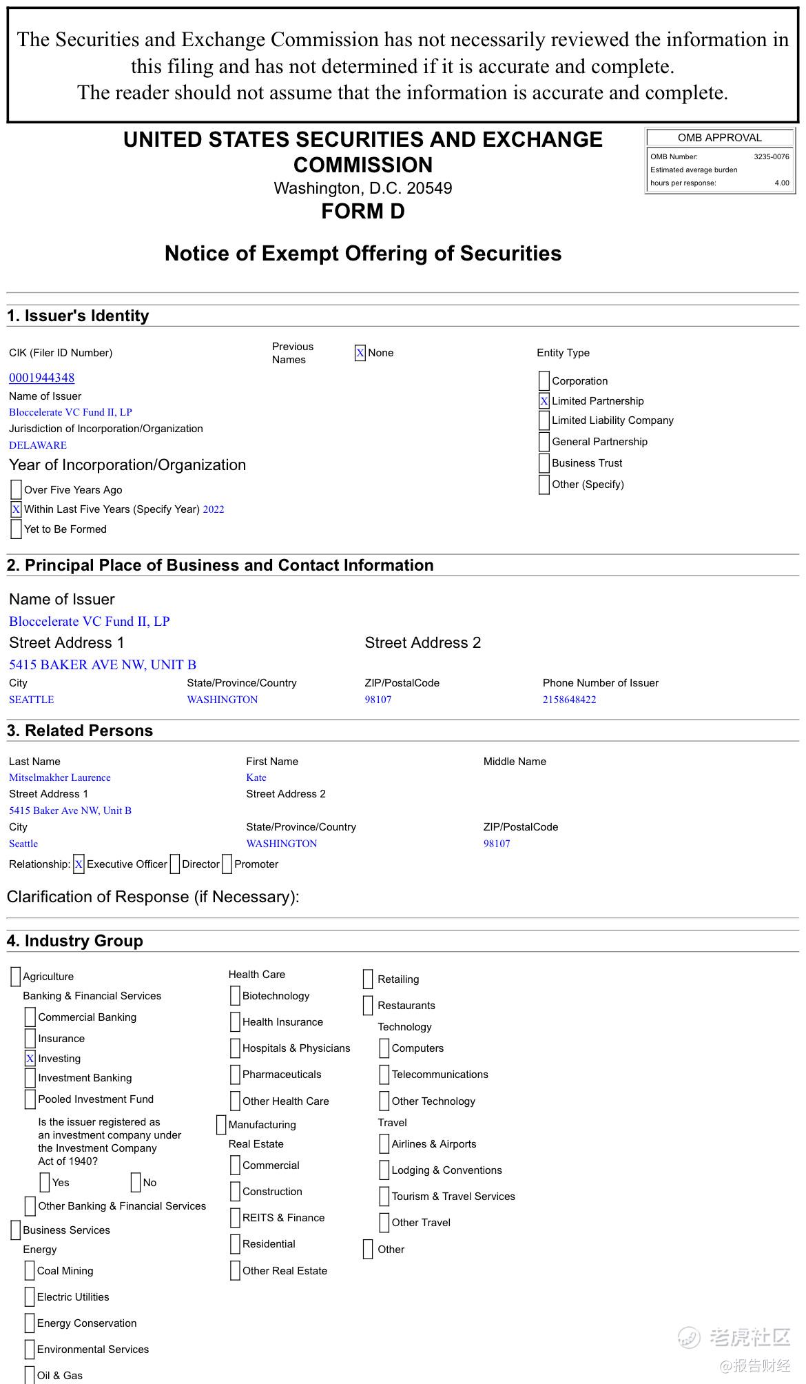 據提交給美國證券交易委員會的一份文件顯示,專注於加密資產的風險投資機構Bloccelerate計劃爲其第二隻基金籌集1億美元資金。 據悉,該基金成立於8月25日,目前已籌集了2000萬美元。