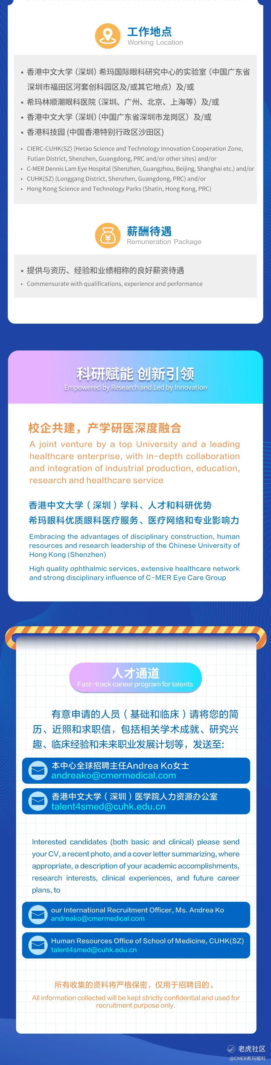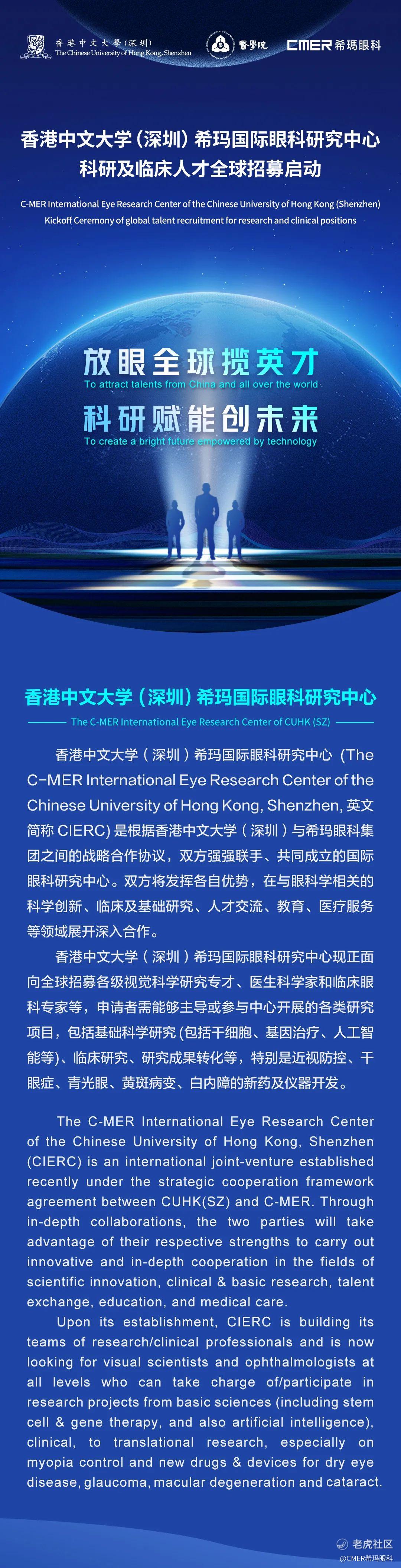 香港中文大学(深圳)希玛国际眼科研究中心招募科研及临床人才
