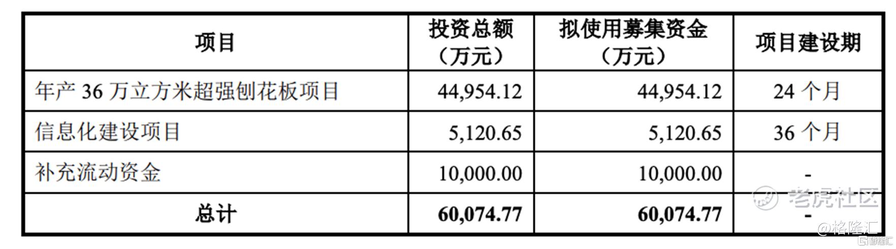 本次擬募資6.01億元,主要用於年產 36 萬立方米超強刨花板項目、信息化建設項目、補充流動資金。