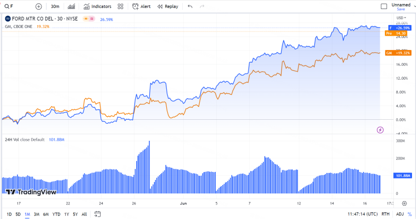 Benefitted by the collaboration, $Ford(F)$ and $General Motors(GM)$ also took a rally in the past month.