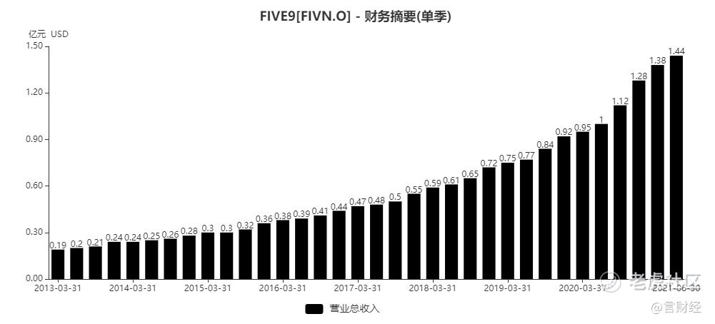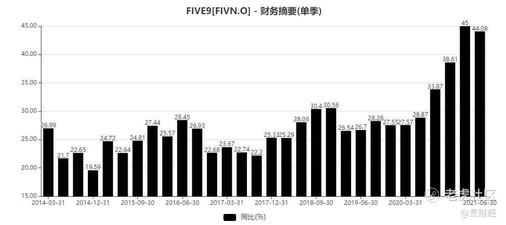 從增速的表現來看,five9基本上過去十年每個季度的收入增速都在20%以上,去年以來,因爲新冠疫情的催化,公司的業績明顯加速,在後疫情時代,仍然值得看好。
