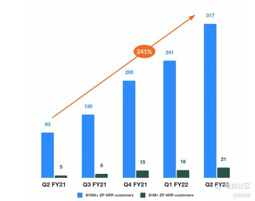付費10 萬美元以上 ARR 的數量客戶同比增長 241%,其中包括 21個100萬美元以上的客戶。