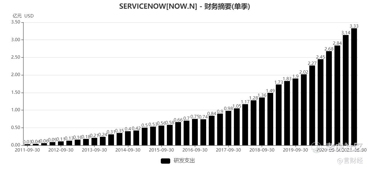 圖:ServiceNow季度研發投入一覽