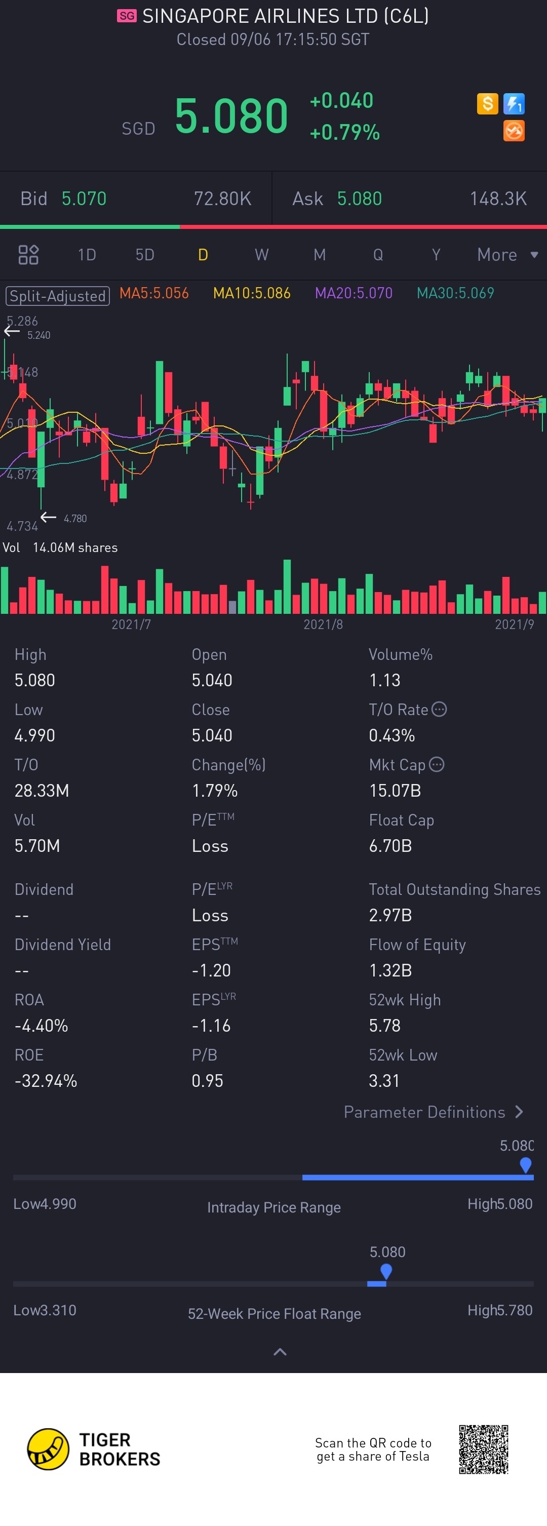$SINGAPORE AIRLINES LTD(C6L.SI)$ share good