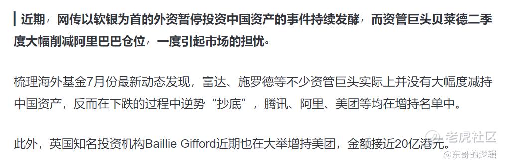 但是市場內其他外資似乎並沒受到政策干預帶來的重大影響,其中施羅德等資本反而在中概大幅回調的過程中逆勢抄底,聰明的資金也意識到了部分優質中概公司在此輪風暴中被錯殺的可能性: