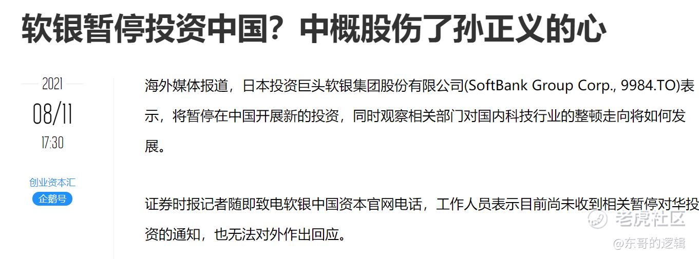 根本原因在於投資者對於市場減持中概的持續擔憂,其中在週二軟銀“暫停”投資中國一消息放出後更是達到擔憂的頂峯。從軟銀集團投資地區分佈看,美國爲第一大投資地區,佔比34%,其次是中國23%,除中國外的亞洲地區佔比25%,歐盟佔比13%,拉美等地區佔比5%。