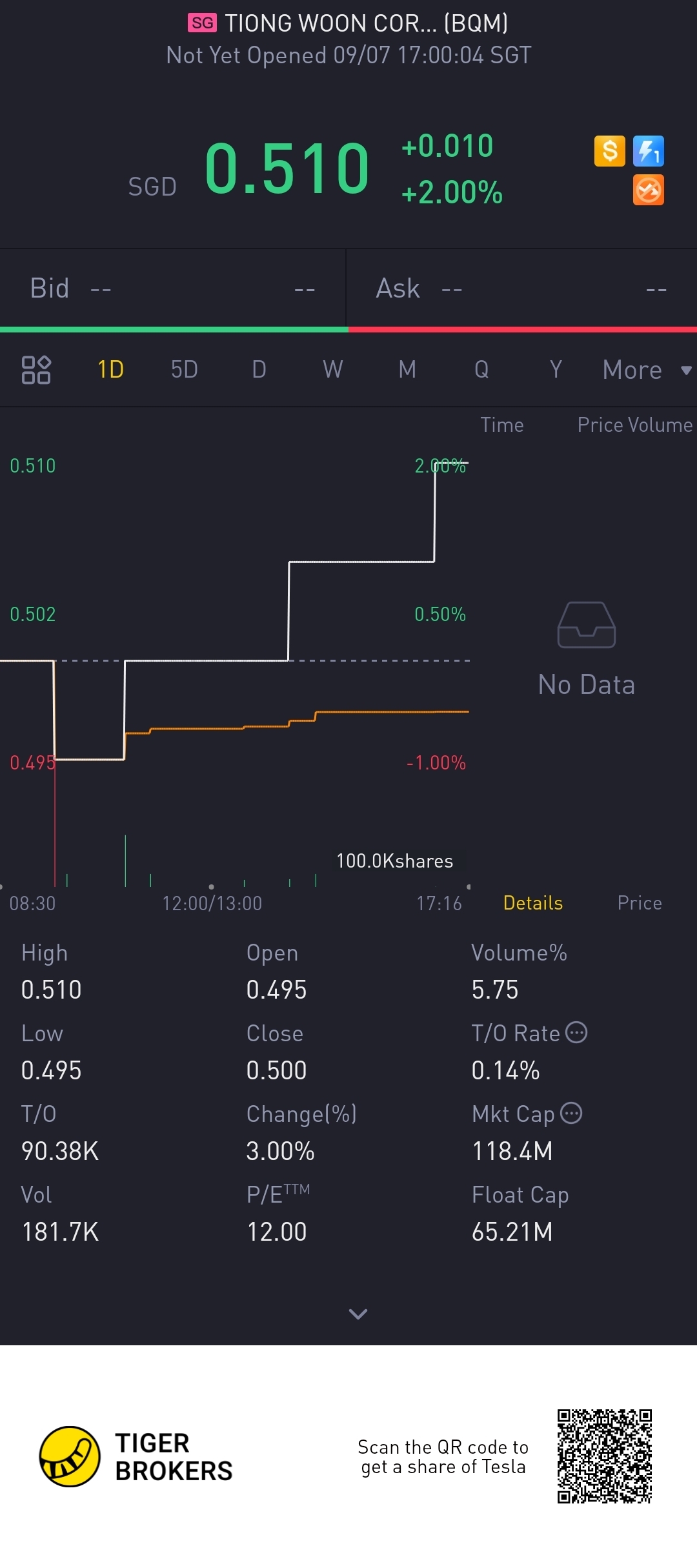 $TIONG WOON CORP HOLDING LTD(BQM.SI)$ time to move