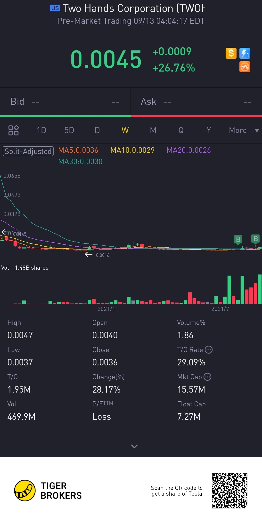 $Two Hands Corporation(TWOH)$doing good... Do your DD and buy