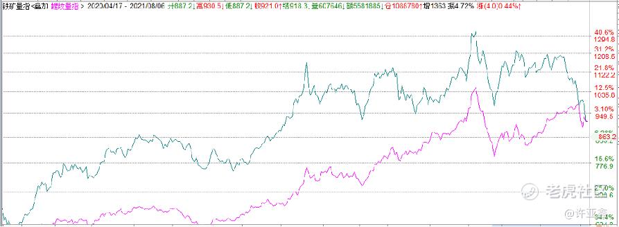 如上圖所示,鐵礦石與螺紋鋼的價差近期已經逐步縮窄,甚至螺紋價格的漲幅已經有穿越鐵礦的趨勢,這也是爲什麼許導在課程直播裏面,重點讓大家關注這個板塊未來的機會: