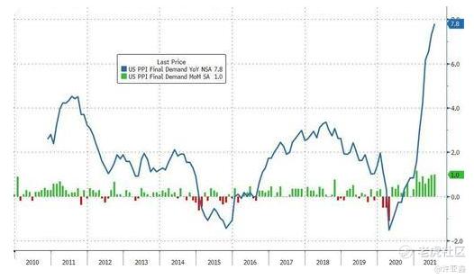 美國7月PPI同比增長7.8%,預期增長7.2%,前值增長7.3%;7月核心PPI同比增長6.2%,預期增長5.6%,前值增長5.6%。從分項來看,能源與運輸成本在7月份飆升幅度最大,而食品成本實際上環比下降。