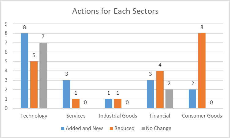 As can be seen from the chart, In 2021, technology companies was accounted for the highest proportion of top holdings. Then the service sector also received better attention from fund managers, while the consumer goods sector represented by AMZN was sold off in 2021.