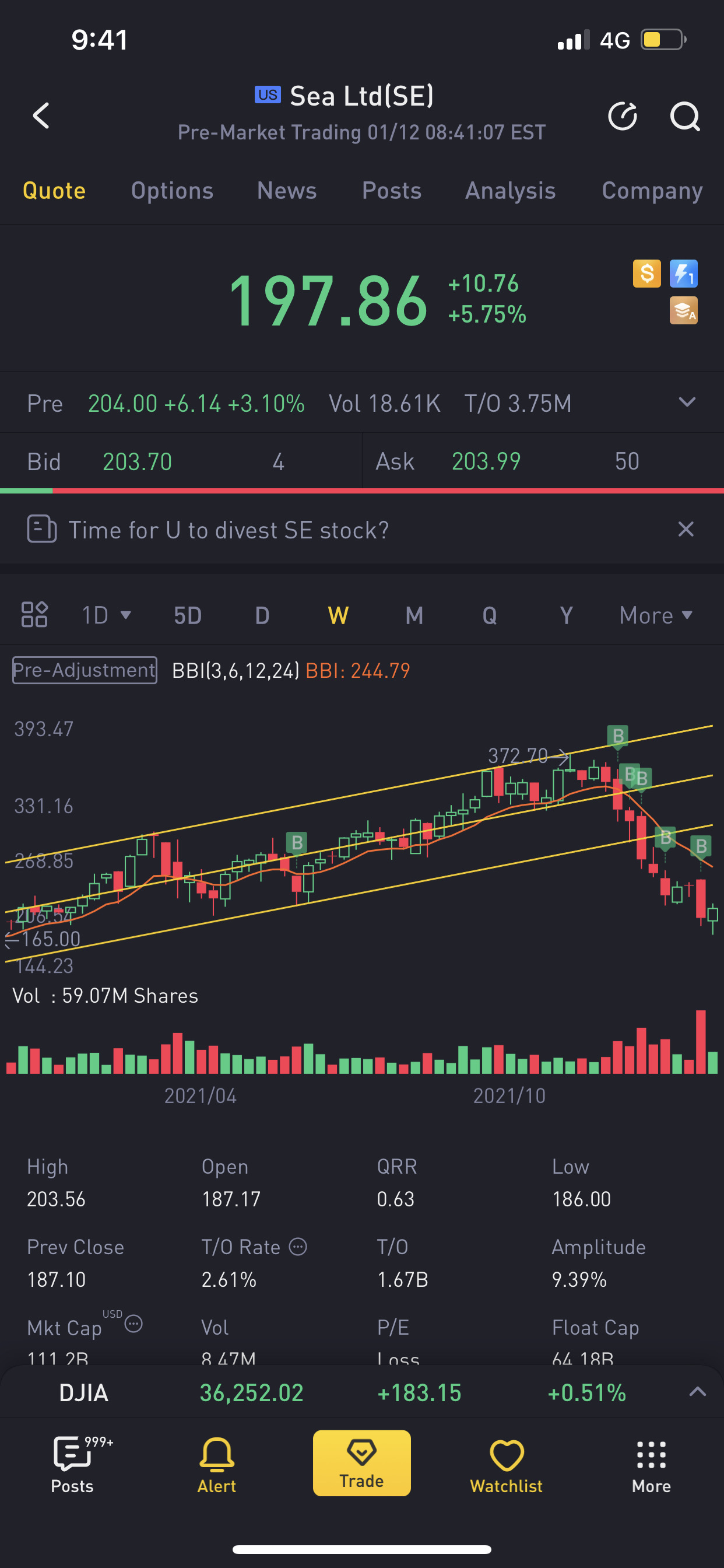 $Sea Ltd(SE)$All the TA will not win u anything if u wait and wait. I use a risk management approach. Ytd, the TA points to a strong recovery. No need to bottom fish, just add this great stock! Cya at $400