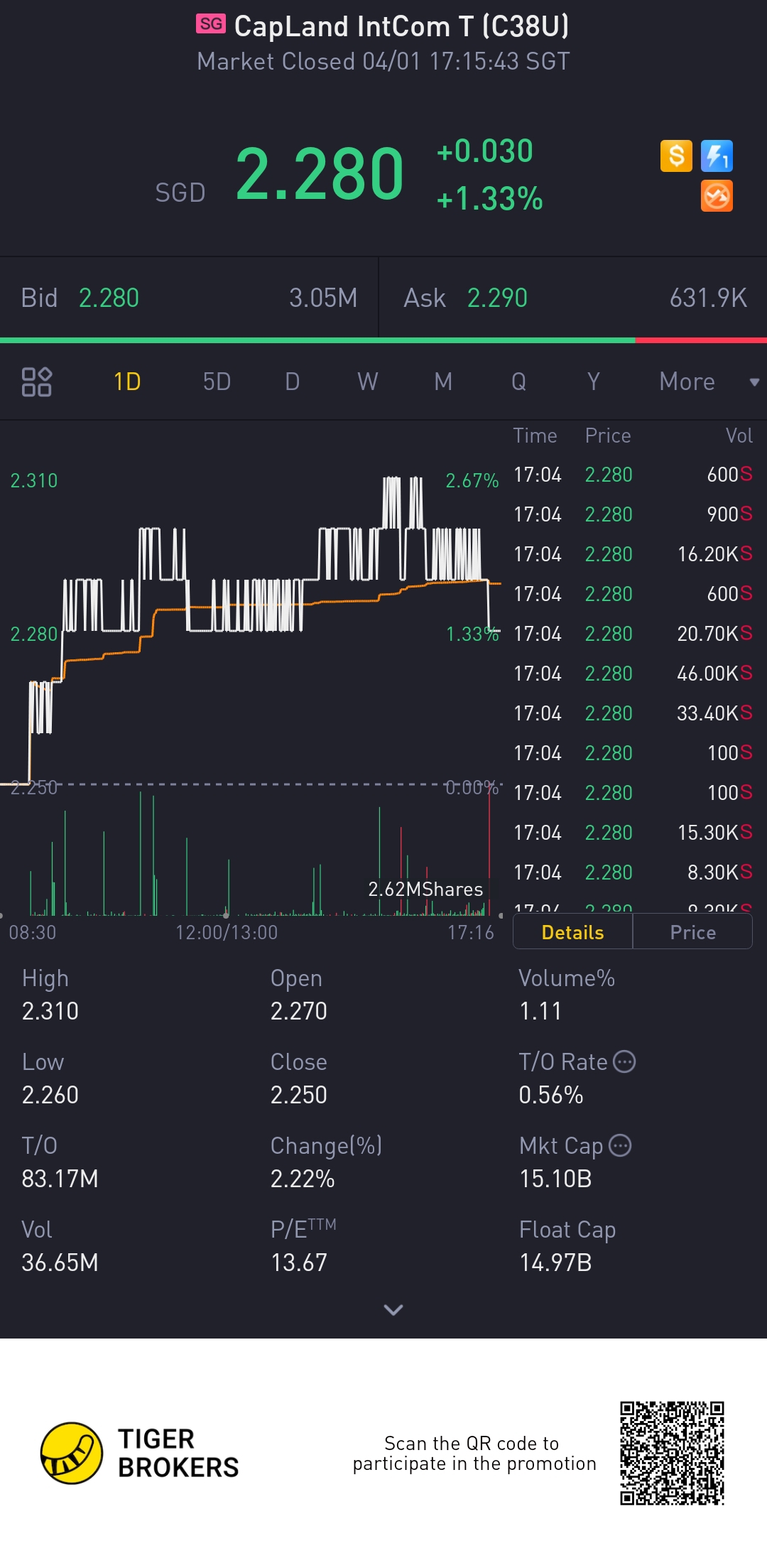 $CapLand IntCom T(C38U.SI)$This share is rising