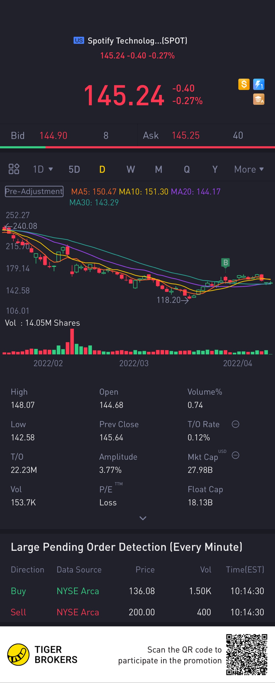 $Spotify Technology S.A.(SPOT)$[Cry] hold?