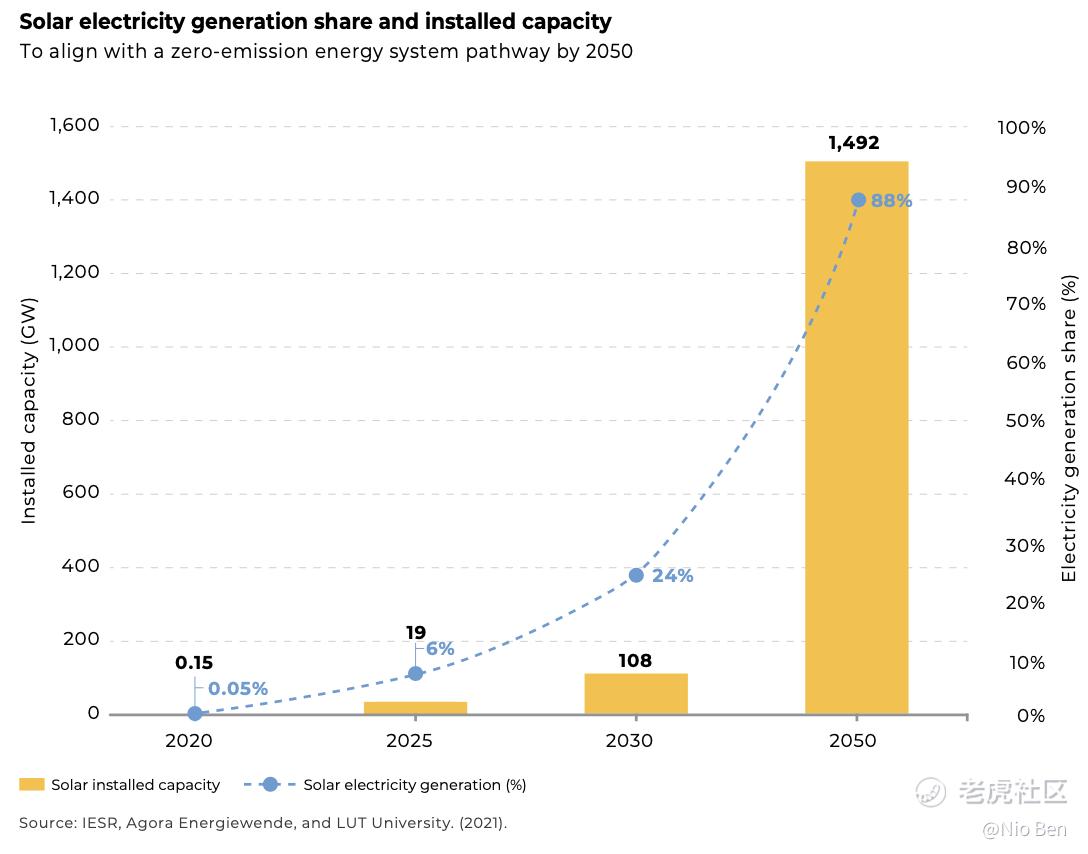 To reach zero-net carbon emissions, solar electricity generation share should see a massive increase from only 0.05% in 2020 to 24% by 2030, and eventually reach 88% in 2050 — in which renewable energy should account for 50% of total electricity generation by 2030 and reach 100% by 2050. Coal generation, on the other hand, should see a decline from ~60% today to 45% in 2030.