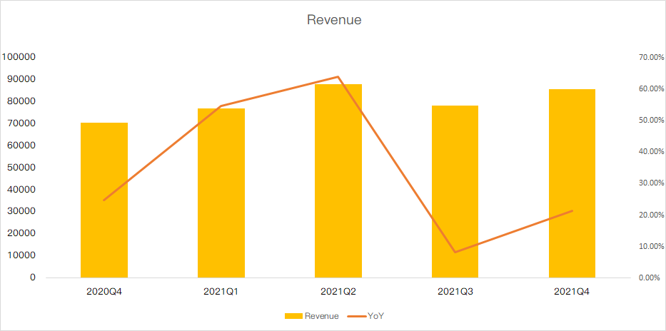 Q4 revenue was 85.575 billion yuan, a year-on-year increase of 21.4%, exceeding expectations;