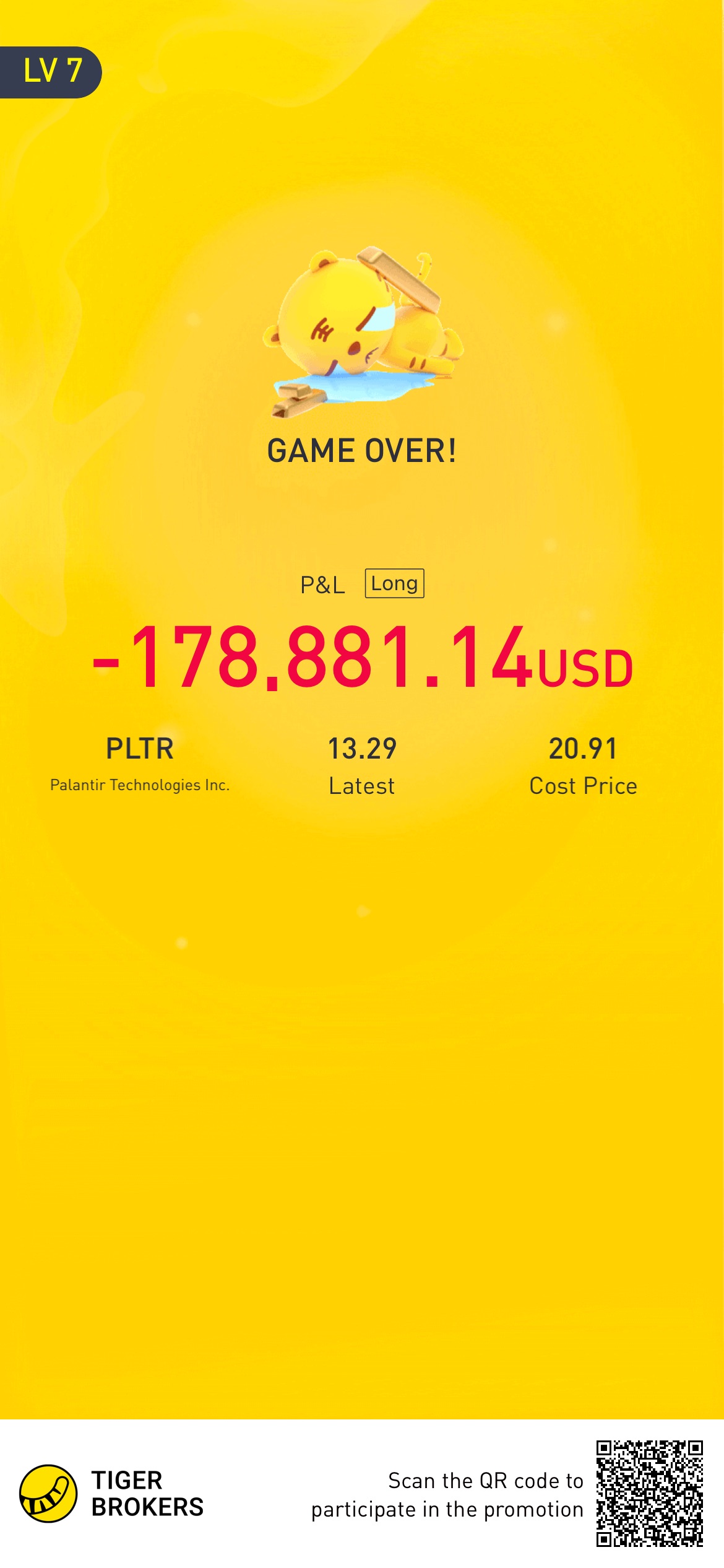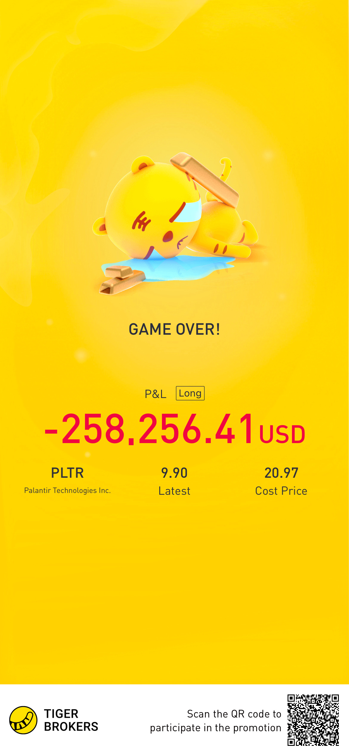 $Palantir Technologies Inc.(PLTR)$Was -$258k usd (tiger broker only) like a couple of weeks ago and how things have changed.