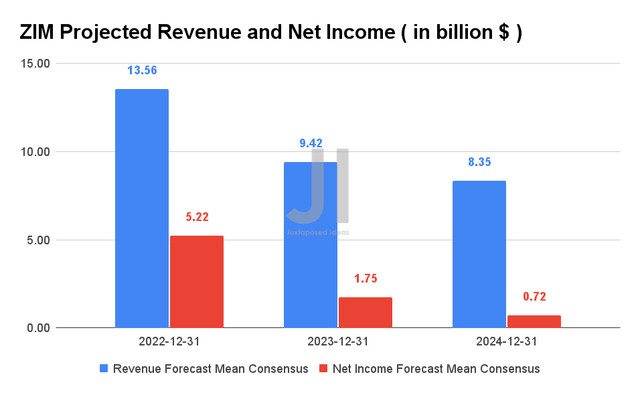 ZIM is expected to report an apparent deceleration of revenue and net income growth over the next three years. Nonetheless, investors need not fret since it still represents a massive revenue growth at a CAGR of 20.28% from FY2020 to FY2024.