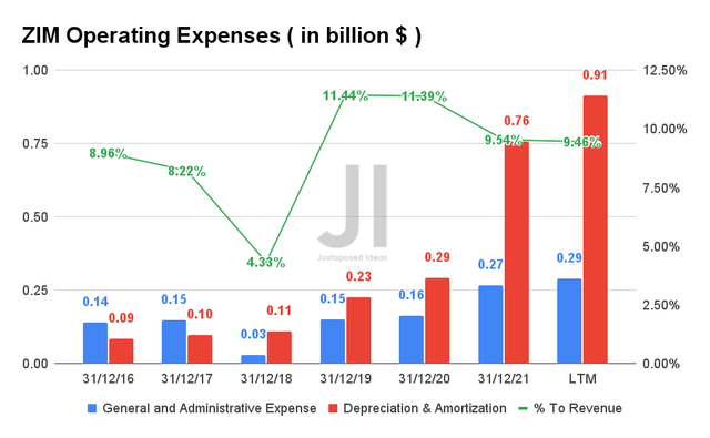 These have also directly contributed to ZIM's increased operating expenses of $1.2B in the LTM, though we are not overly concerned, since it constitutes only 9.46% of its revenue and 20.6% of its FCF then.