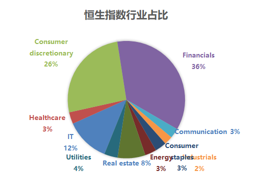From the comparison,Financial sector weights 36% in Hang Seng Index (the highest in previous years can exceed 50%), Consumer discretionary weights for 26%, and these two industries alone exceeded 60%. Although this is very Hong Kong, it will obviously not be an intuitive embodiment of any economy.