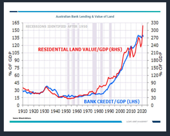 And I've included here a chart, which come from Gerard Minack, a wonderful chart because it covers 110 years of history, and shows how tightly linked have been the ratio of property price to GDP and credit to GDP.