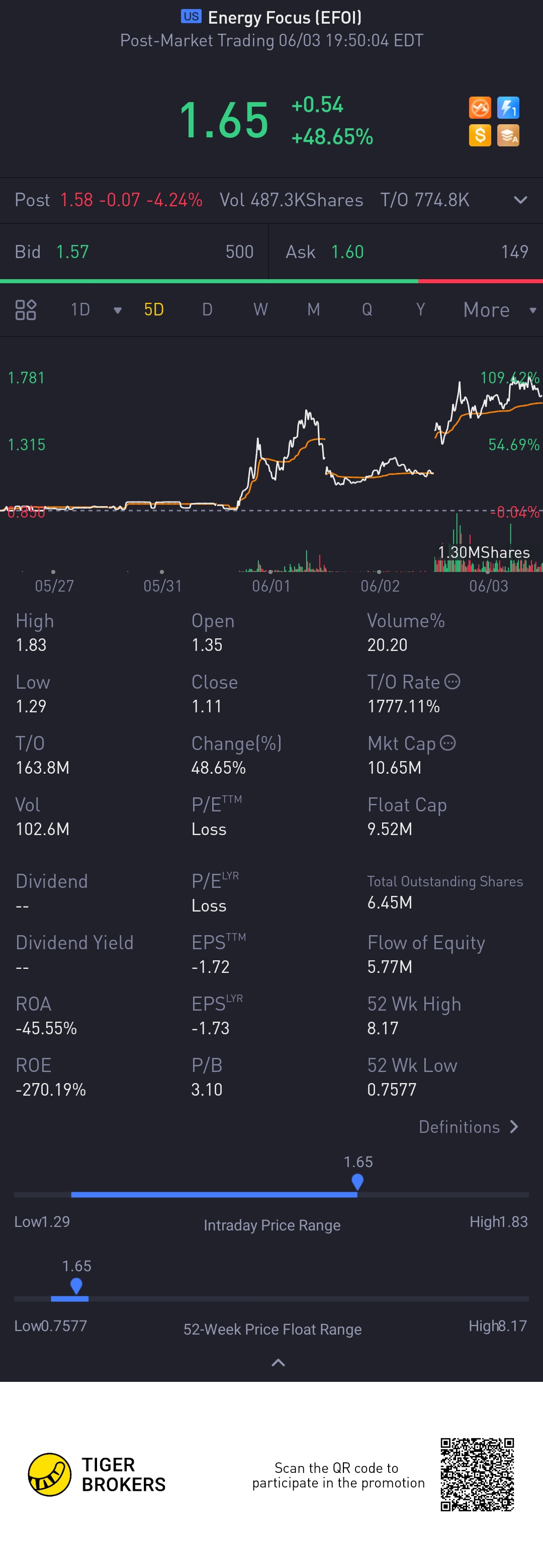$Energy Focus(EFOI)$It is a hot penny stock to consider buying. This stock has seen over 48% increase yesterday!!