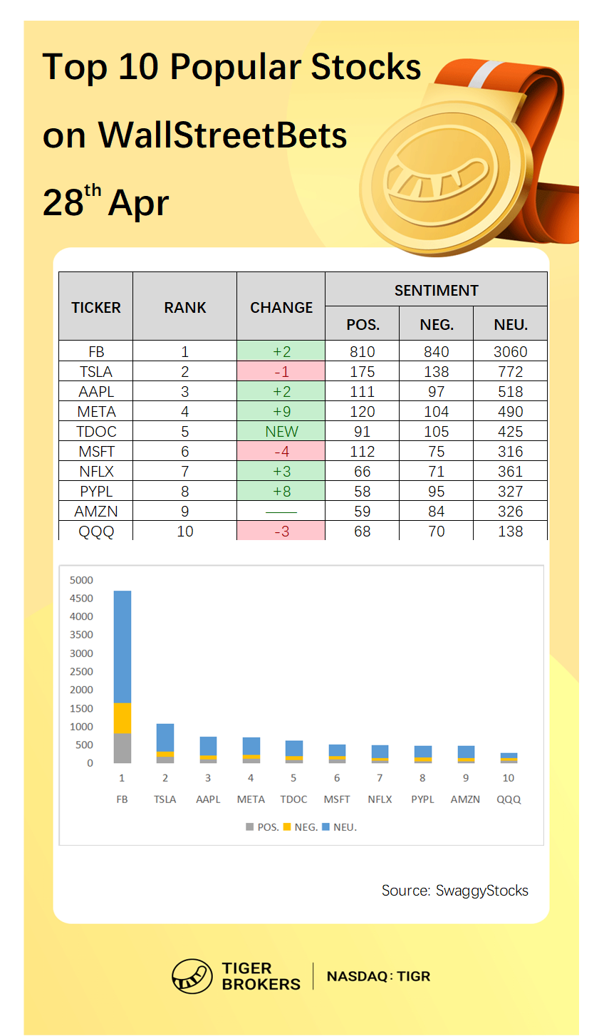 $Meta Platforms, Inc.(FB)$ $Tesla Motors(TSLA)$ $Apple(AAPL)$ $Teladoc Health Inc.(TDOC)$ $Microsoft(MSFT)$ $Netflix(NFLX)$ $PayPal(PYPL)$ $Amazon.com(AMZN)$ $Invesco QQQ Trust(QQQ)$