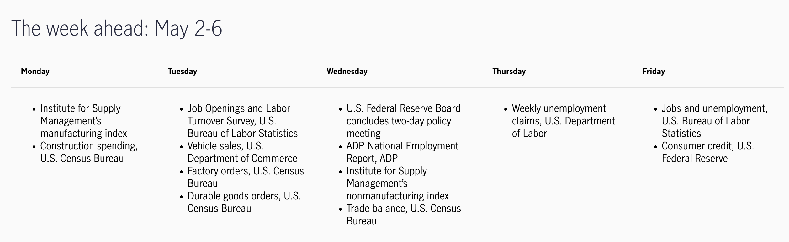 - Themajor indexes endured a fourth consecutive week of losses, as growth fears were compounded by some disappointing earnings results from Amazon.com, which has a heavy weighting in many prominent indexes.TheS&P 500 Index moved further into correction territory, down roughly 14% from its recent peak, whilethetechnology-heavy Nasdaq Composite and small-cap Russell 2000 Index fell further into bear markets, down roughly 24% fromtheir highs. Energy stocks outperformed withintheS&P 500 after Russia announced that it was cutting off natural gas exports to Poland and Bulgaria.