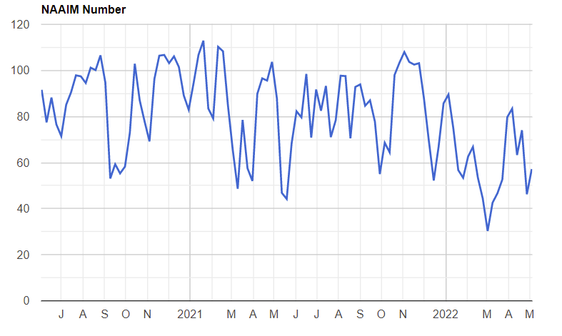 This week’s NAAIM Exposure Index number is: 57.18, picking up from the previous week low of 46.25.