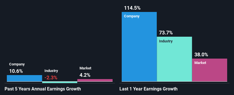 At first glance, Ascendas Real Estate Investment Trust's ROE doesn't look very promising. However, the fact that the company's ROE is higher than the average industry ROE of 6.7%, is definitely interesting. Consequently, this likely laid the ground for the decent growth of 11% seen over the past five years by Ascendas Real Estate Investment Trust. Bear in mind, the company does have a moderately low ROE. It is just that the industry ROE is lower. So there might well be other reasons for the earnings to grow. For example, it is possible that the broader industry is going through a high growth phase, or that the company has a low payout ratio.