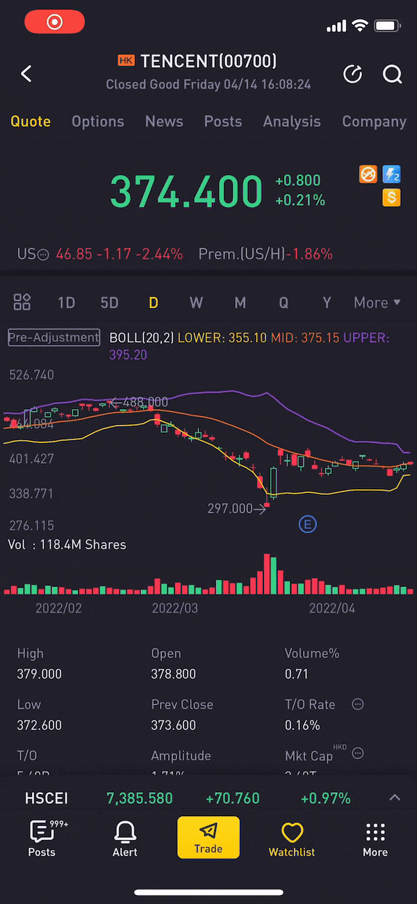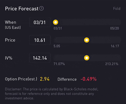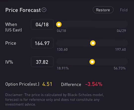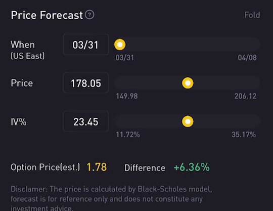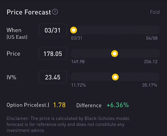 Option Price Calculator is a feature that adopts the famous Black-Scholes Model as the underlying instrument, which calculates the expected option price based on the user's input, such as stock price, implied volatility and days-to-expiration.