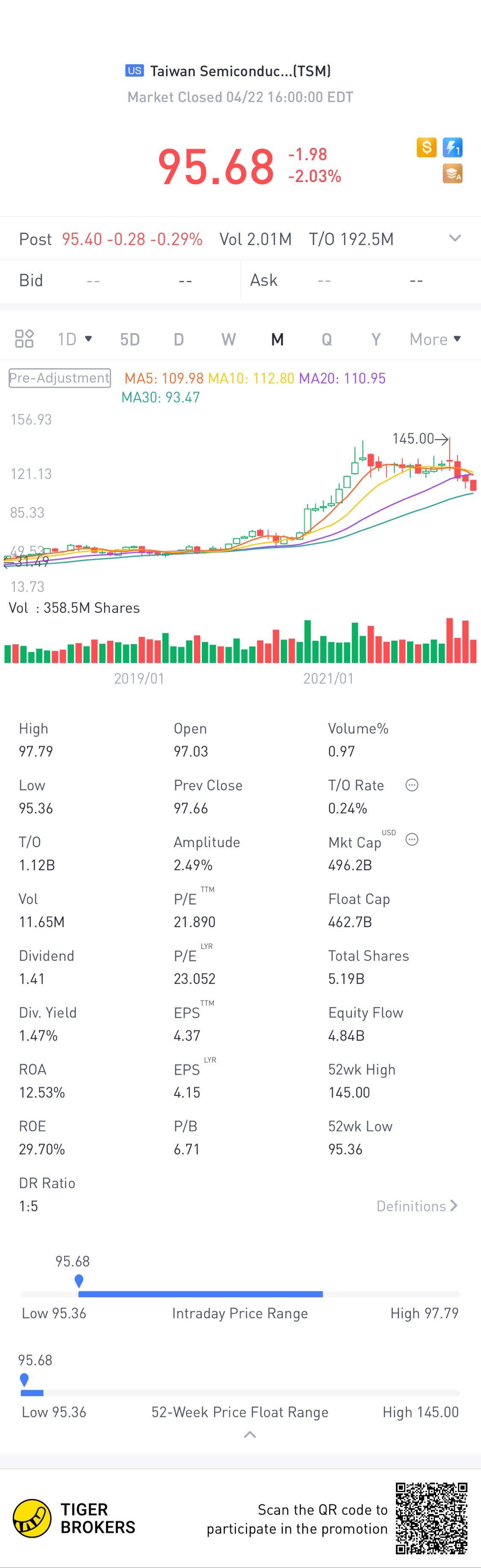 $Taiwan Semiconductor Manufacturing(TSM)$This company delivers above expectation results in earnings and Semiconductor is pretty much needed in near future technoloy devices. Yet the stock is not reflecting for now.. definitely worth to put under one's radar (watchlist)... Interesting....