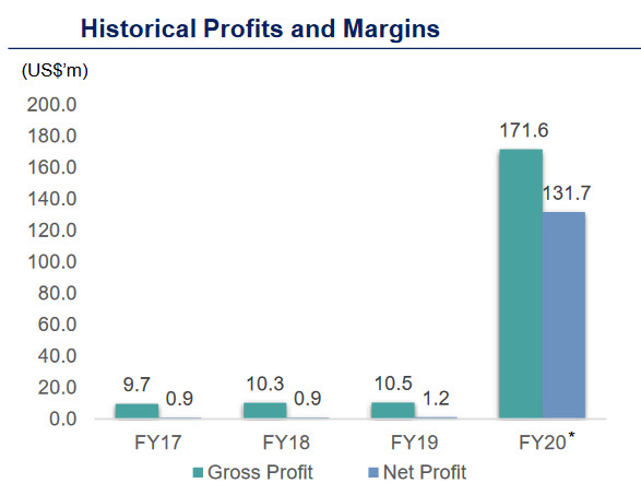 During FY20 Medtecs achieve 480% growth due to covid pandemic, and it resulted in US$131.7(m) of net profit, as compared to US$1.2(m) during FY19. Significant profit margins has arise from economies of scale, higher proportion of sales of Medtecs branded products, and higher average selling prices of PPE.