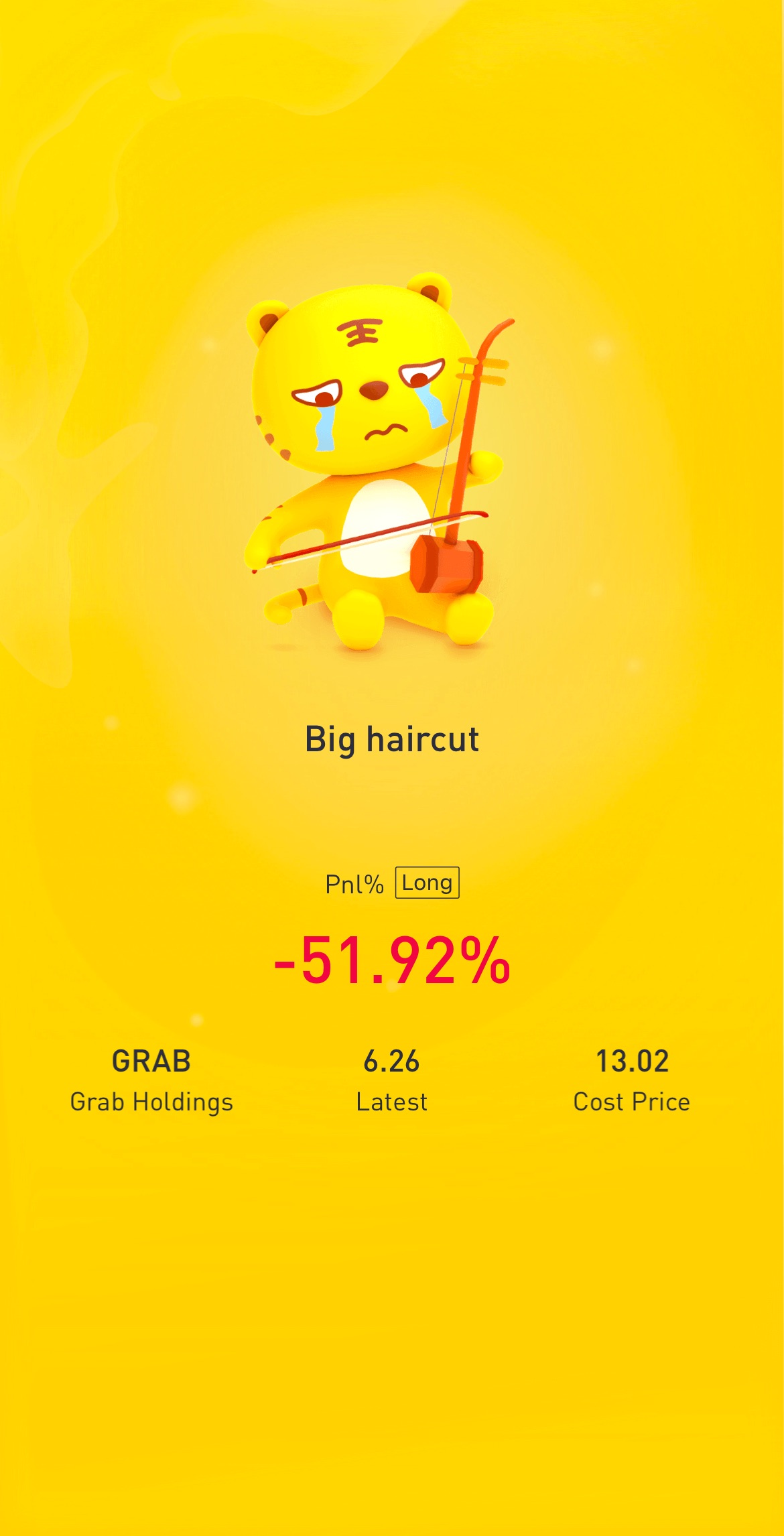 😂same. But i cut loss at -60%. Sad… no hope for GRAB