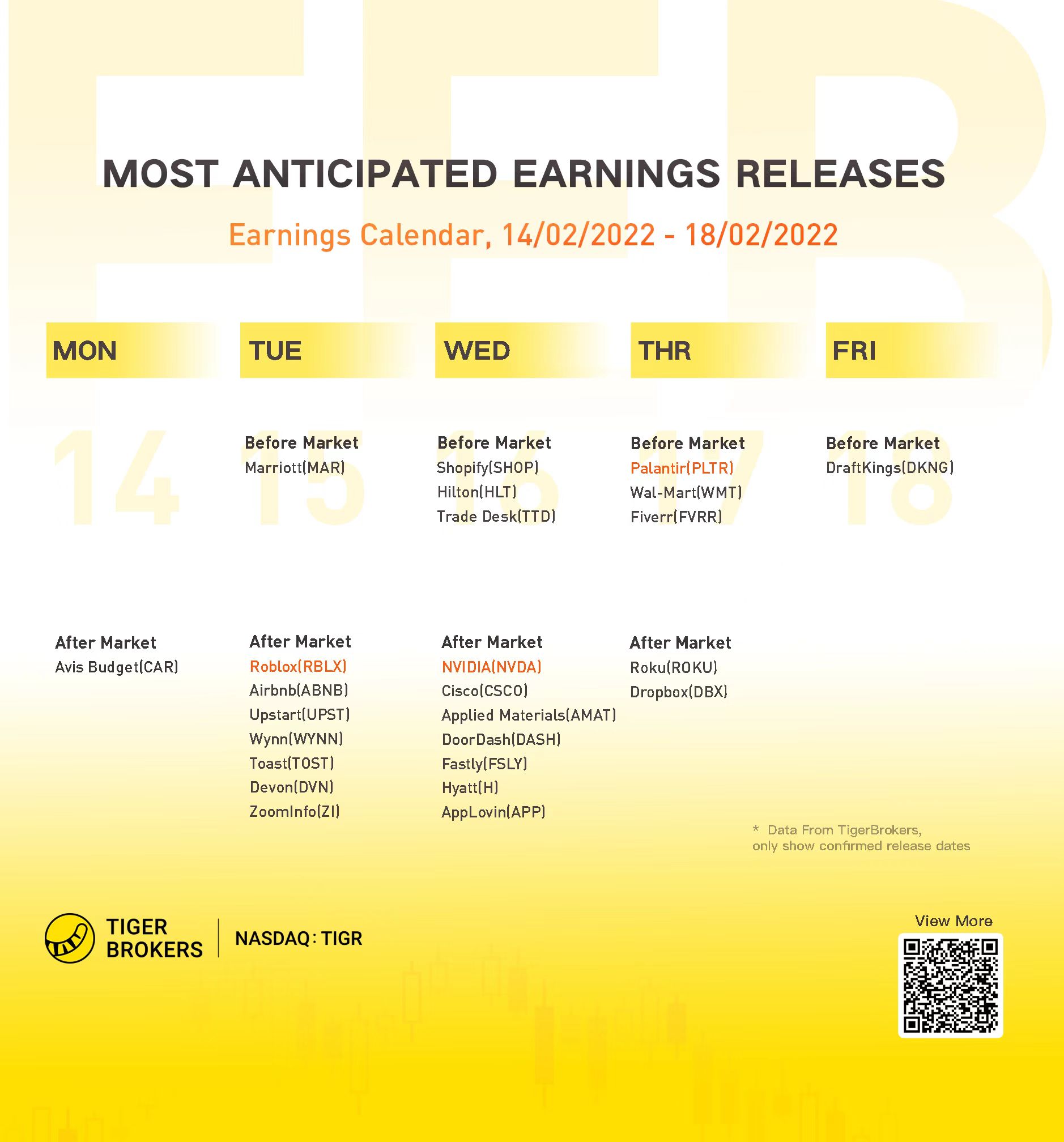 Weekly Earnings Calendar (Feb 14- Feb18)