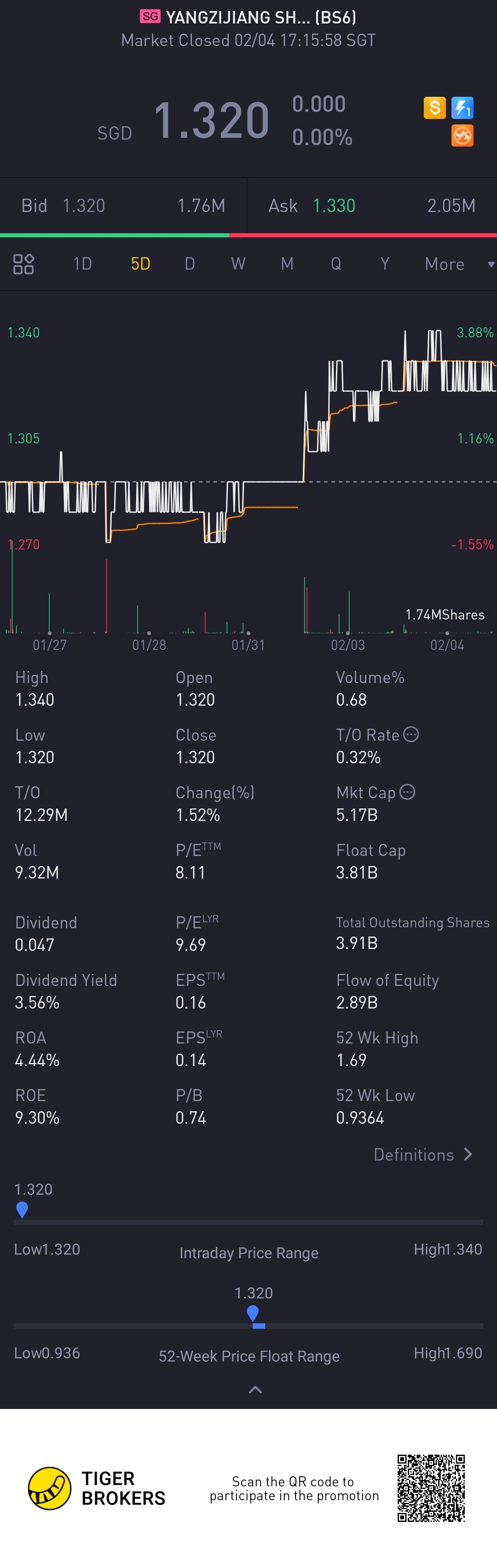 $YANGZIJIANG SHIPBLDG HLDGS LTD(BS6.SI)$What do u think is a good selling price? Waiting for 1.73