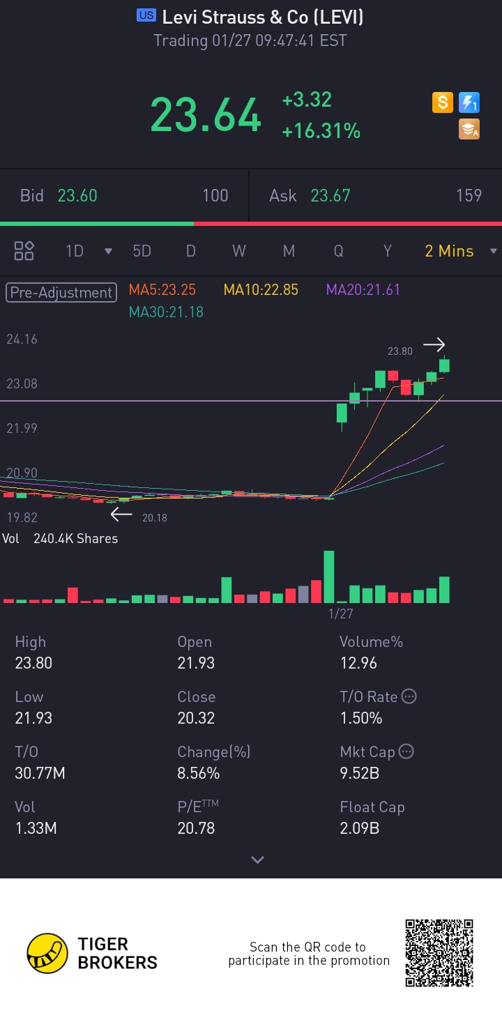 $Levi Strauss & Co(LEVI)$breakout trendline..