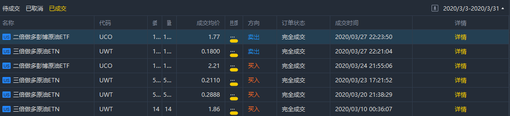 先上我的交易記錄:$三倍做空原油ETN(DWT)$ $二倍做多彭博原油ETF(UCO)$
