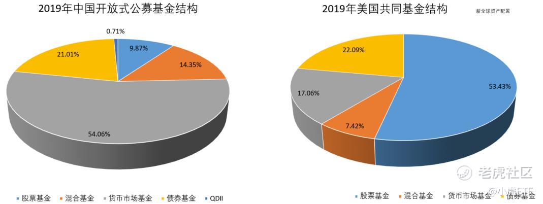 美國的共同基金規模達21.29億美元。共同基金的結構與中國相反,股票基金佔據一半以上的份額,貨幣基金佔比僅有17%。